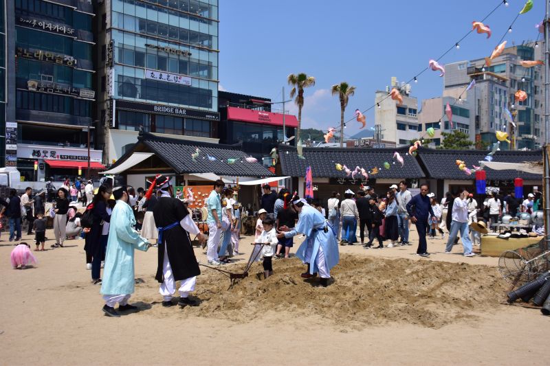 정도때만 해도 사람이 많기는 했지만 그런대로 괜찮았는데 오후 3시 경이 되었을 사람들이 물밀듯이 몰려왔다. 저녁에는 아마 더 많을 것이다. 오늘보고자 했던 지신밟기와 내왕소리체험, 좌수영어방놀이, 수영야류가지 봤으니 볼것은 다 본 것이다. 해야할 일도 있고해서 5시경 광안리 해수욕장을 빠져 나왔다. 오후 5시경 정도 되자 얼마나 사람들이 많은지 발디딜틈이 없었다. 광안리 불꽃 축제 때의 2/3정도 되지 않을까 싶다. 입구 거리는 밀려 다녔다.