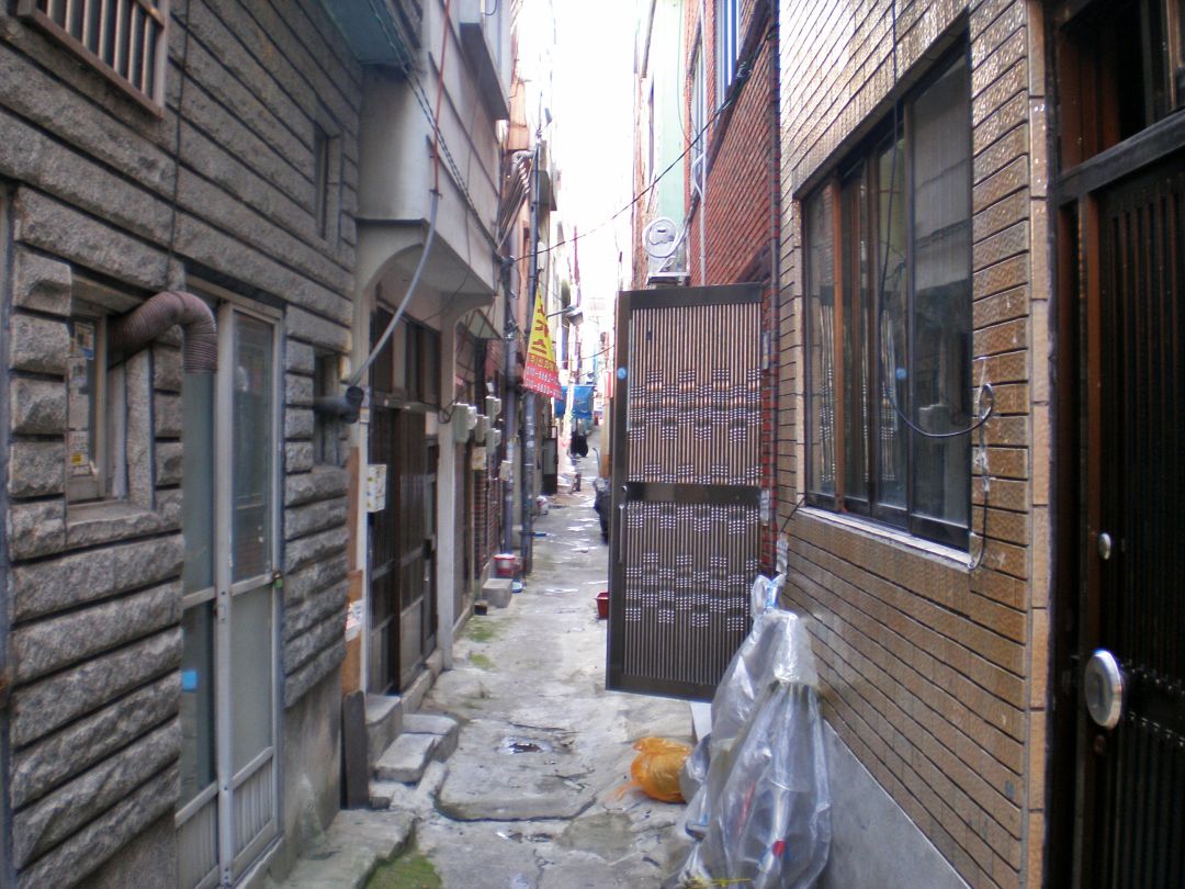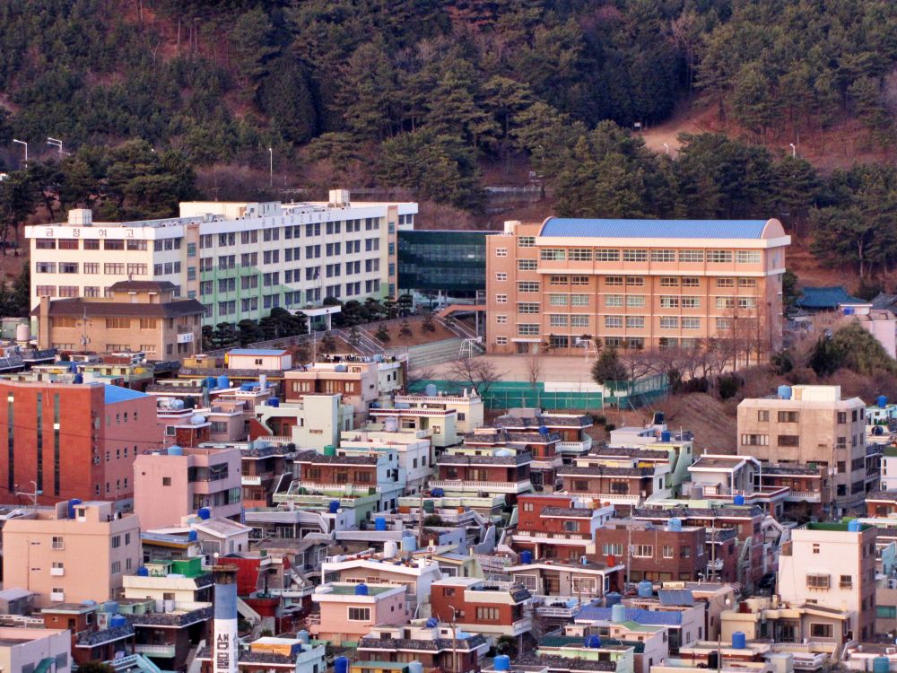 2008년 강산병원에서 바라본 서3동 전경. 산 중턱에 길다란 건물은 금사초등학교다. 바로 앞에 서동의 기원이 되는 섯곡 마을이 자리했던 한성기린아파트가 보인다.