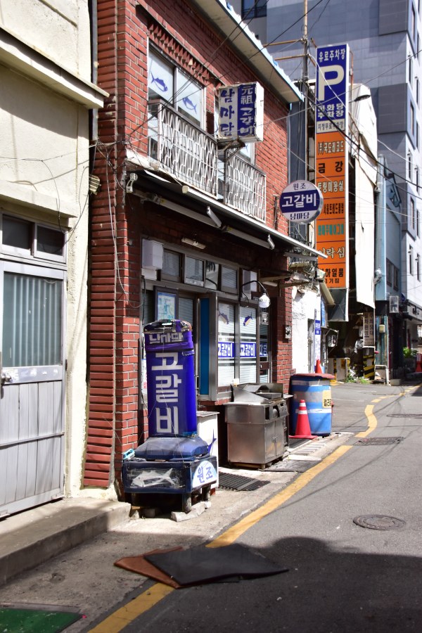 고갈비 골목 입구의 건물들도 많은 곳이 임대로 나와 있고, 공실이다. 한 때 전국을 호령했던 남포동 거리인데 말이다. 아직 광복동과 남포동 거리는 사람이 적지 않다. 하지만 몇과 몇십 미터 안 골목은 사람의 흔적이 느껴지지 않을 정도다. 참으로 기이하다.
