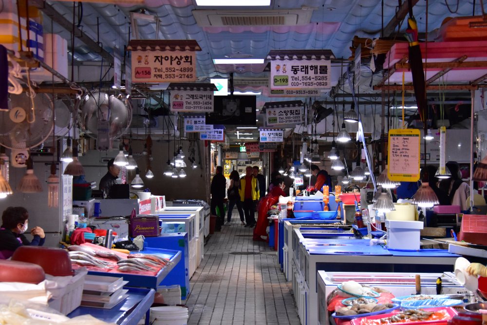 동래시장은 건물에 있는 시장이고, 수안인정시장은 건물밖 골목 시장이다. 약간 떨어져 있기는 하지만 같이 붙어 있다고 봐야 한다. 동래시장이 확대되면서 골목에 시장이 형성된 경우다. 부산의 전통 시장 중에서 가장 활달한 시장이 수안인정시장이다.