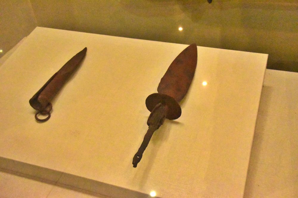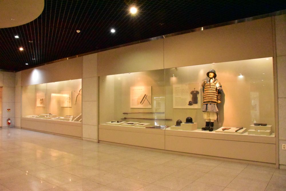 해자에서 발견된 임진왜란 당시의 조선군의 갑옷과 칼, 투구, 낫, 화살과 화살촉 등이 전시되어 있다.