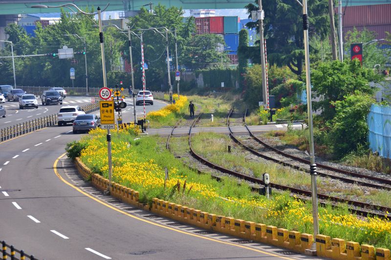 주변 분위기는 않좋지찬 철로는 꽃이 피어서 그런데 정말 예쁘다. 관광자원으로 활동해도 좋지 않을까 싶다.