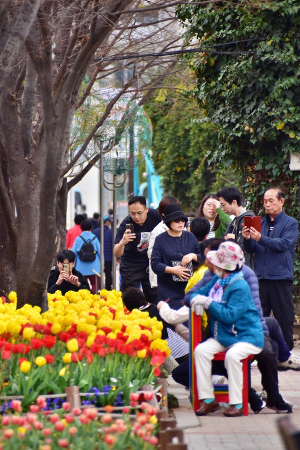 터미널 앞쪽 공원에 튤립이 어찌나 곱던지 수많은 사람들이 몰려와 사진을 찍는다. 꽃이 있으면 사람들이 몰려오는 법이다.