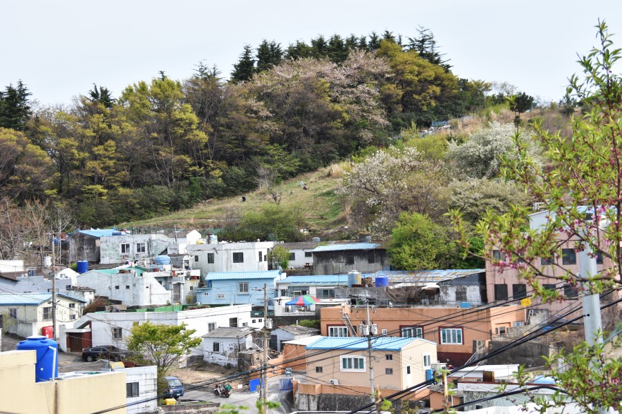 마을 위로 올라가니 바로 앞에 부산대학병원이 보인다. 저 멀리 영도도 한눈에 들어온다.
