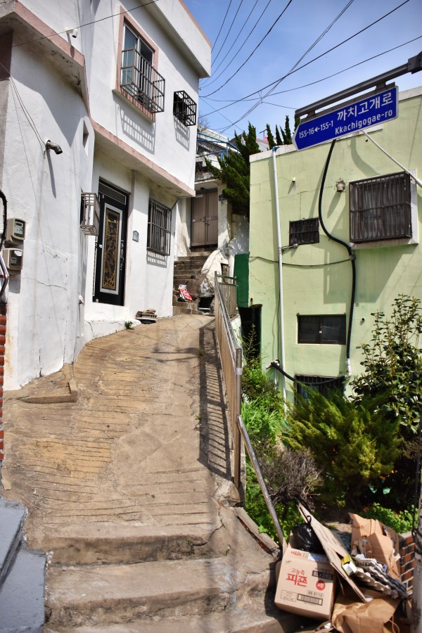 까치고갯길을 바로 올라가지 않고 중간에 아미파출소 뒷길인 아미동 청소년 회관 길로 들어갔다. 지금까지 가보지 않은 천주교 아파트 뒷마을을 가고 싶었기 때문이다. 까치고개로 167번 길과 151번 길을 타고 마을을 전체적으로 살폈다. 이 마을은 다음 글에 마을에 대한 글과 함께 올릴 것이다. 이곳에서 사진 몇 장만을 소개한다.