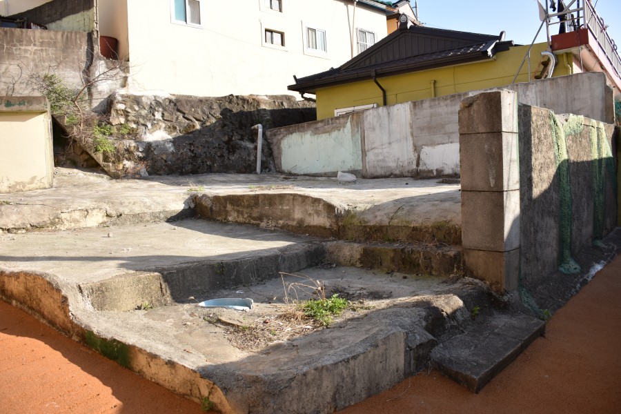 막다른 골목인지 모르고 계속 들어갔더니 이런 골목이 나온다. 하도 특이해서 사진을 몇 장 찍었다. 대문이 있고, 그 안에 또 집이 있었다. 집 안에 집이라니... 그리고 대문 왼쪽에는 샘이었다. 샘 위에 벽을 쌓아 집을 지은 것이다. 상수도가 없었을 때 우물은 정말 귀중한 것이었다. 아마도 그때는 동네 사람들이 같이 쓰다 상수도가 들어오면서 우물은 쓸모가 없어져서 막아 버린 것 같다. 이러한 동네 우물은 구도심에 가면 의외로 많다.