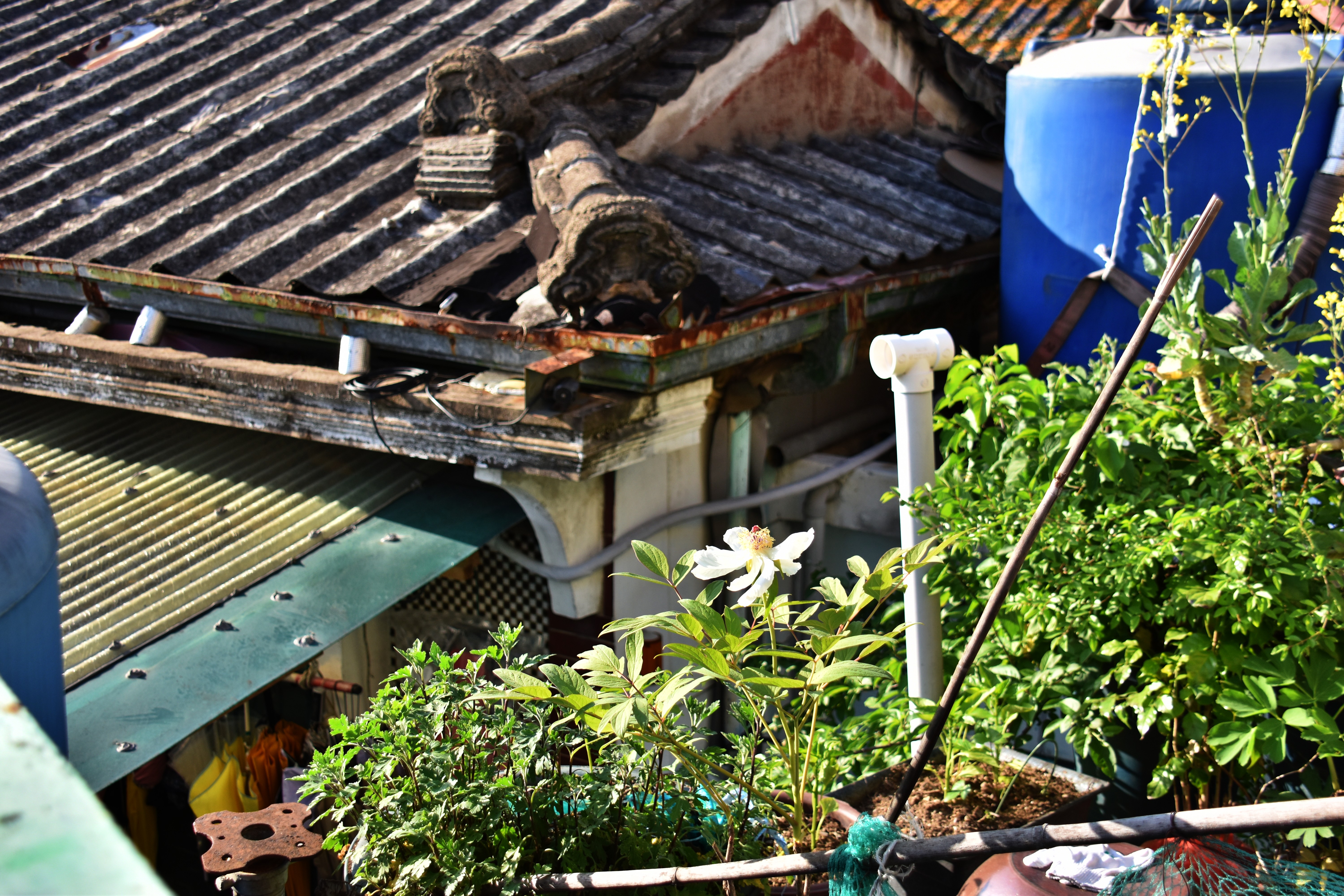 지붕에서 자고 있던 고양이가 카메라 소리에 놀라 숨는다. 고양이가 있는 줄도 몰랐다. 위의 사진을 보니 고양이가 지붕에서 자고 있다.