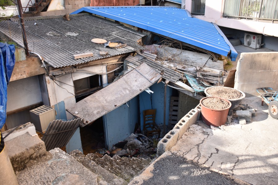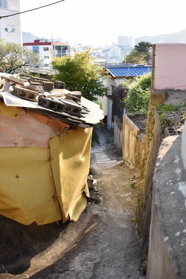 다시 좁은 골목길로 내려갔다. 사람 한 명 겨우 지나갈 좁은 골목길이다. 제대로 된 지붕도 없어 판자를 놓고 블록을 올려놓았다. 벽은 쓰다 버린 장판으로 대신했다. 이렇게 사는 곳도 있구나.