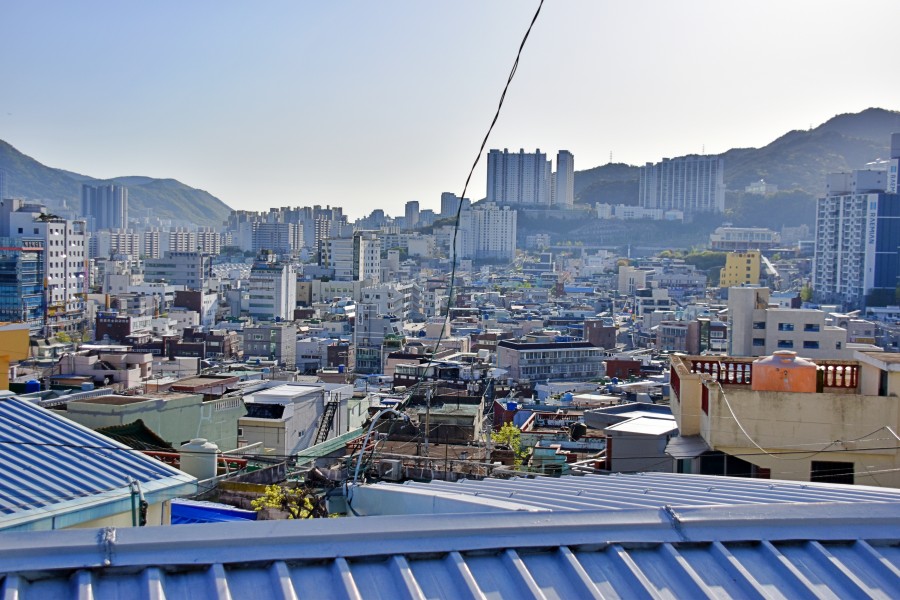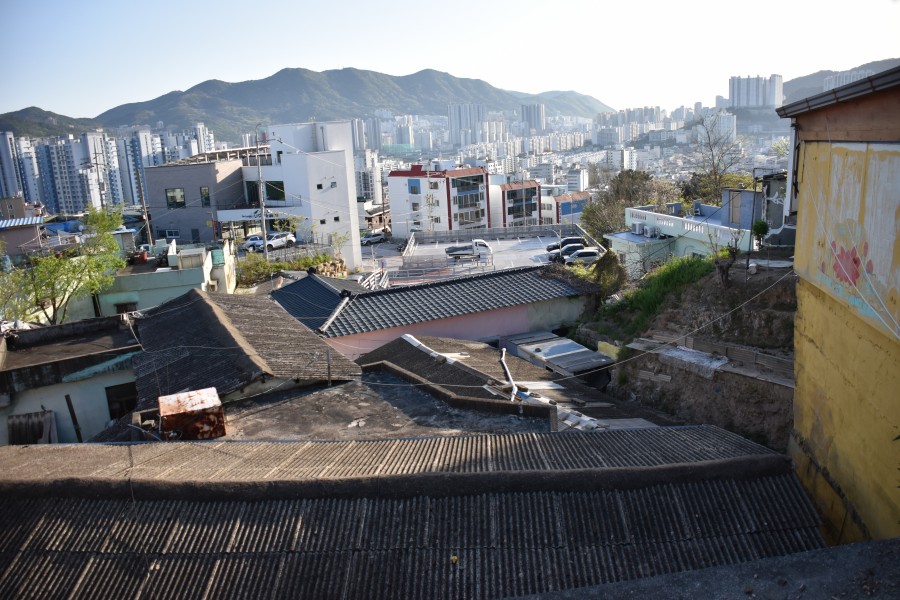 남산슈퍼 앞에서 바라본 아랫마을, 부암동 아래말을과 당감동 지역이 한눈에 들어온다. 저 멀리 보이는 언덕 위의 아파트는 개금동의 동원화인패밀이타운아파트와 개금우드빌 아파트이다. 그냥 보기에 아슬아슬하다. 난 무서워서 못 살 것 같다.
