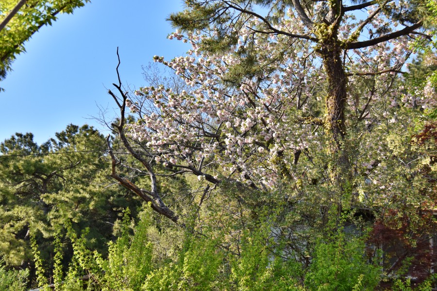 분홍 겹벚꽃와 하얀 겹벚꽃의 색 차이가 확연하다. 새하얀 색은 아니지만 기존의 붉은색과는 완전히 다르다. 이런 품종이 있었다니 거참...