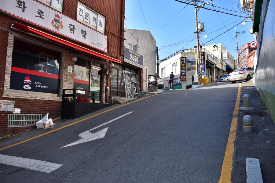 드디어 큰 골목으로 나왔다. 나중에 내려갈 때는 큰 길로 내려갔는데 정말 가까웠다. 골목을 돌고 돌아 여기까지 온 것이다. 이 골목도 사람이 많이 살았을 때는 골목 상권이 꽤나 괜찮았을 것이다.