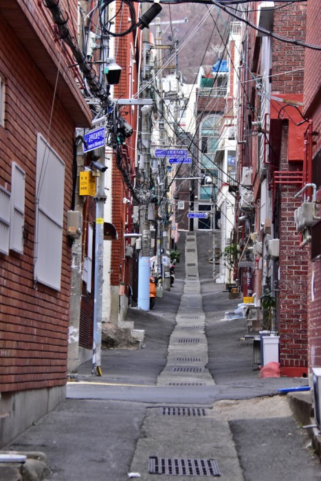 흡사 서1동 풍경과 너무 닮아 있었다. 부산이 길이 좁고 많은 사람들이 살아야 했기에 비좁은 골목을 사이에 두고 수많은 집들이 있다는 것을 잘 안다. 하지만 단연코 서1동은 어느 곳도 따라갈 수 없을 만큼 복잡하다. 지금도 많이 남아 있다. 그런데 이곳은 서1동과 너무 비슷했다. 공단이 있었던 곳도 아닌데 왜 이런 집들이? 의아함이 증폭됐다. 곧장 위로 올라갔다.