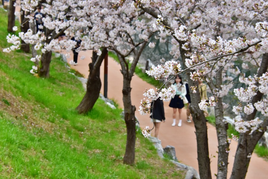 오늘 해수천을 갔다 오면서 가장 아쉬웠던 점은 날씨가 흘려서 벚꽃의 화사한 느낌을 담을 수가 없었다는 점이다. 벚꽃도 80% 정도 개화한 것 같아 좋았는데, 황사에 날씨가까지 흐려 쨍한 사진을 얻을 수가 없었다.