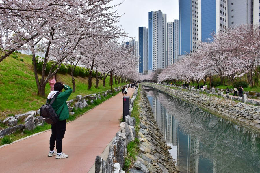 오늘 해수천을 갔다 오면서 가장 아쉬웠던 점은 날씨가 흘려서 벚꽃의 화사한 느낌을 담을 수가 없었다는 점이다. 벚꽃도 80% 정도 개화한 것 같아 좋았는데, 황사에 날씨가까지 흐려 쨍한 사진을 얻을 수가 없었다.