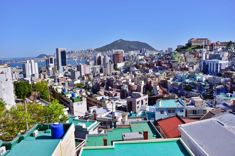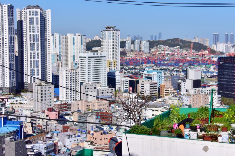오르고 또 오르니 저멀리 북항이 보인다. 영도도 보인다.