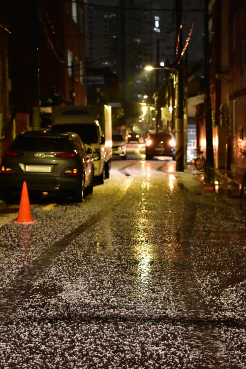 2023년 12월 6일, 밤이 깊어가는 저녁 9시경 천둥이 치더니 이내 우박이 쏟아졌다. 처음엔 광안리 해수욕장에서 행사가 있어 폭죽을 터뜨리는가 싶었는데 소리가 달랐다. 잠시 후 엄청난 우박이 10여 분 쏟아져 내렸다.