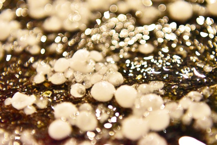 우박의 크기는 5-10mm 정도였다. 한 겨울에 우박이 내리는 이유는 대기가 불안정하여 낮 동안 데워진 공기가 상층의 찬 공기가 만나면서 만나면서 우박이 만들어진다고 한다. 우박 크기가 크지 않아 다행이지만 좀 더 컸더라면 큰 피해를 입을 수 있다. 우박이 내일 때는 돌아다니지 말고 곧바로 지붕이 있는 곳으로 피해 있어야 한다.
