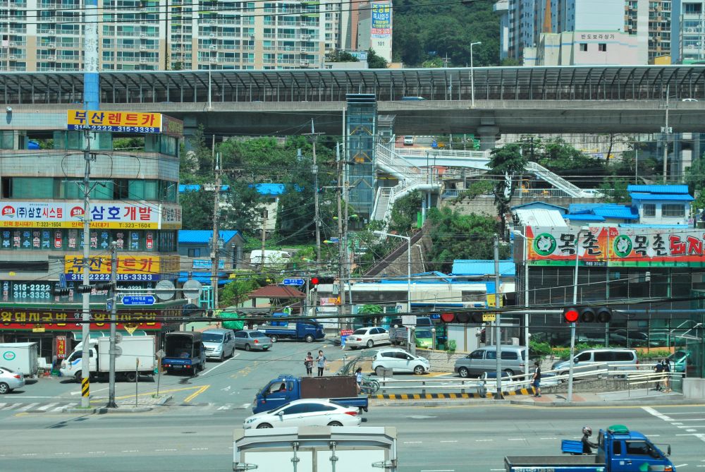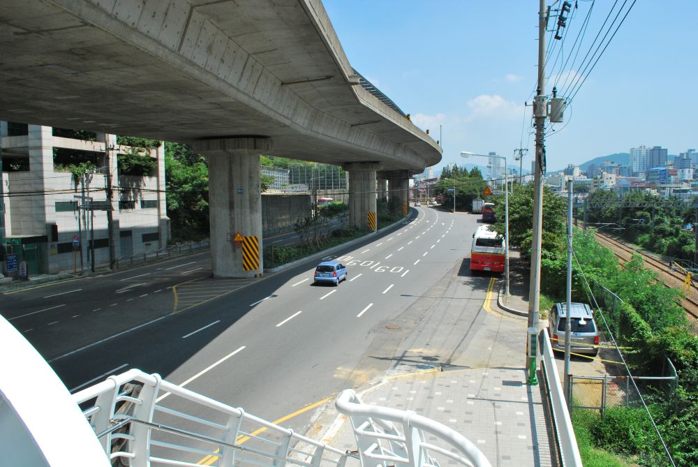 육교를 더 높이 올라가면 동서고가도로와 백양대로를 볼 수 있다.