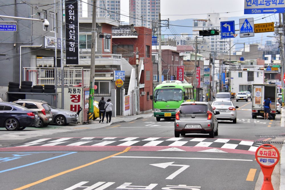 연미아파트 주변은 작은 시장도 형성되어 있고, 배산연과 연산교차로와 수영교차로 중간에 자리하고 있어 교통량도 많이 시내버스도 많은 편이다. 여러면에서 편리하다. 고급스러운 느낌은 덜하지만 그렇다고 영도나 서동처럼 복잡하고 어지러운 느낌은 거의 없는 편이다.