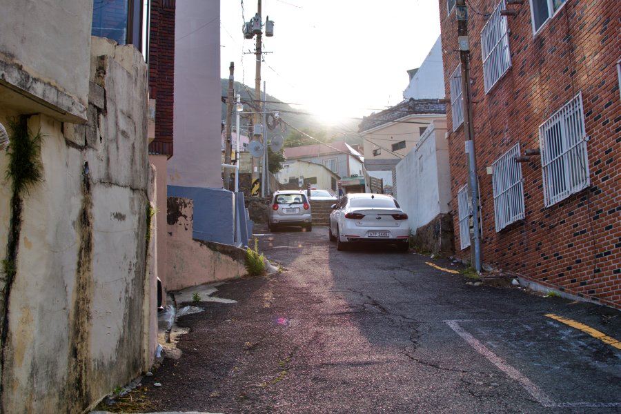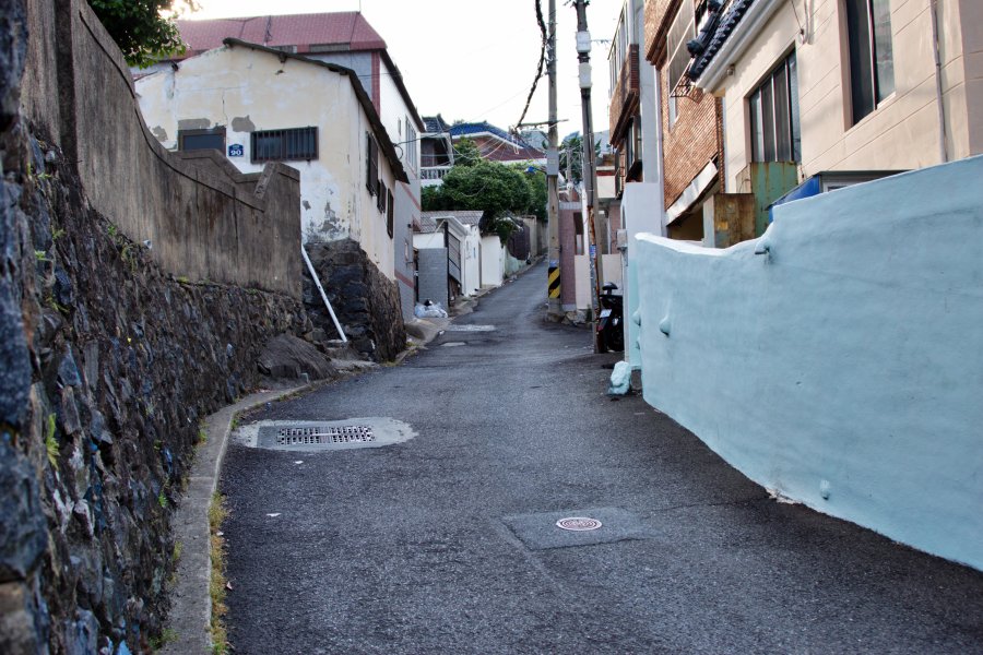 7번을 고신대까지 올라와 주변을 둘러보고 하동상회 골목으로 내려갔다. 고신대 바로 아래 집들은 대부분 원룸형태나 자취방 형태로 되어 있다. 하지만 노후화 된 건물이 많고 학생수고 줄어들고 있어 빈집이 점점 많아지고 있는 실정이다. 재개발 계획이 겹치면서 집을 팔고 나간 집도 많아서 2/3는 비어 있어서 썰렁한 분위기가 연출된다.