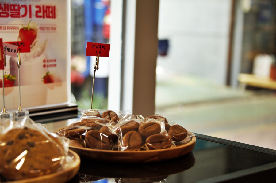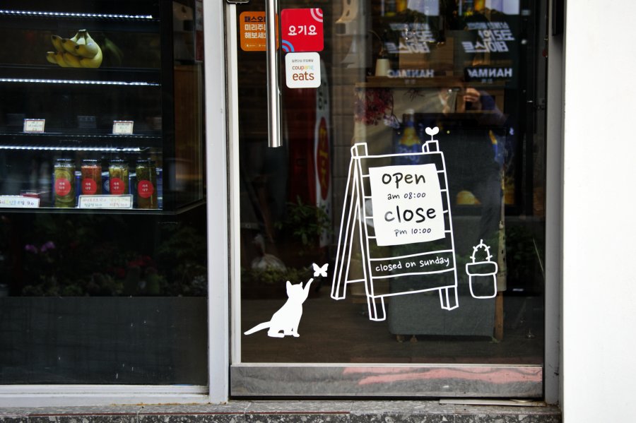하루 14시간을 연다. 짧지 않은 시간이다. 시장 사람들을 배려한 것일까? 아니면 알바가 따로 있을가? 출입문 디자인이 귀엽다.