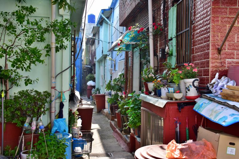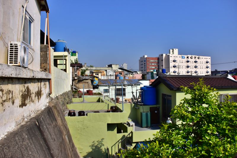 이렇게 좋은 골목 위에 집들이 2층 3층까지 올라가 있다. 보기만 해도 아찔하다. 이러한 집들은 일제강점기 시절이나 6.25 피난민들의 집이 아니라고 한다. 대부분 시골에서 돈을 벌기 위해 올라온 이들에게 세를 주기 위해 집을 개조하고 자르고 올려 만든 집들이라고 한다. 본주민과 피난민들은 이렇게 하여 월세를 놓아 돈을 벌었다. 공간이 너무 좁아 발을 뻗으면 어떤 공간도 남아 있지 않는 방들이 수도 없이 많았다. 이런 곳에 화장실이 있을 턱이 없으니 공동화장실이 많았던 것이다.