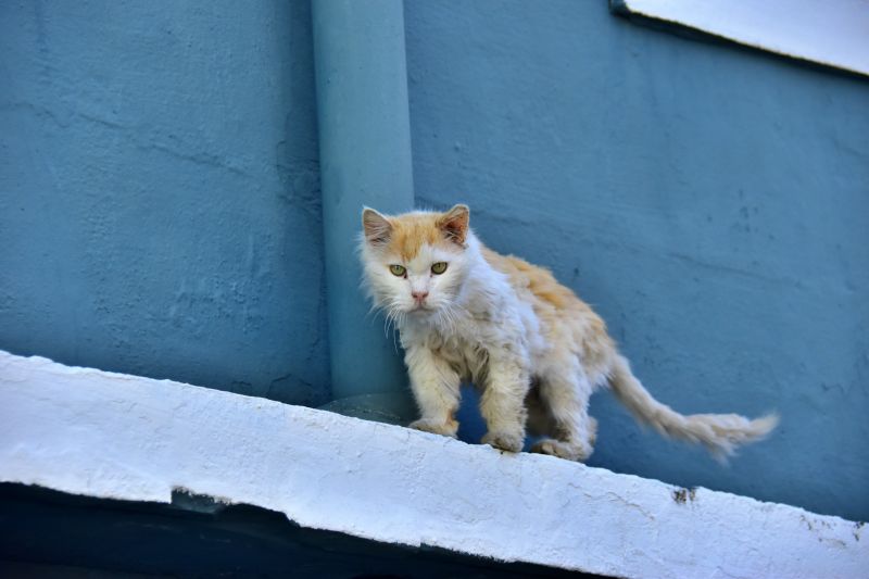 마을 구경을 하는데 갑자기 고양이 한 마리가 저기서 걸어온다. 어? 품종묘? 뭐지? 그런데 많이 아파 보인다.