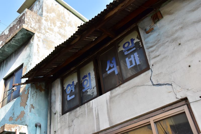 딱 봐도 당시 젊은 사람들이 좋아할 메뉴들이다. 이젠 모두 떠나고 건물만 외로이 남아 있다. 돈까스와 냉면 분식집이다. 일을 하고 집으로 돌아갈 때면 옹기종기 모여서 식사를 했을 것이다. 학교를 마친 학생들도 이곳에 모여 잡담을 나누며 즐거워하지 않았을까?