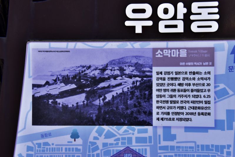 일본은 조선의 소들을 전장으로 보내고, 일본으로 빼가기 위해 부산의 우암동과 함경북도 청진에 우역검역소와 소막사를 짓는다. 그때가 1909년이었다. 강제합방도 일어나기 전에 일본은 모든 준비를 마친 것이다. 참으로 악날하다. 이렇게 우암동은 마을까지는 아니지만 사람이 사는 곳으로 변모하게 시작된다. 하지만 1945년 일본은 망하고 소막들을 그대로 두고 일본으로 들어간다. 우암동은 그야말로 버려진 공간이 된다.