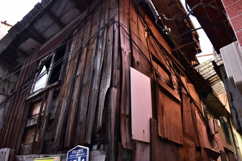 여기도 판잣집이 있다. 이렇게 판자가 그대로 드러난 집도 몇 있지만 대부분은 밖에 색도 칠하고, 엷은 시멘트로 칠해 놓은 곳들이 있다.