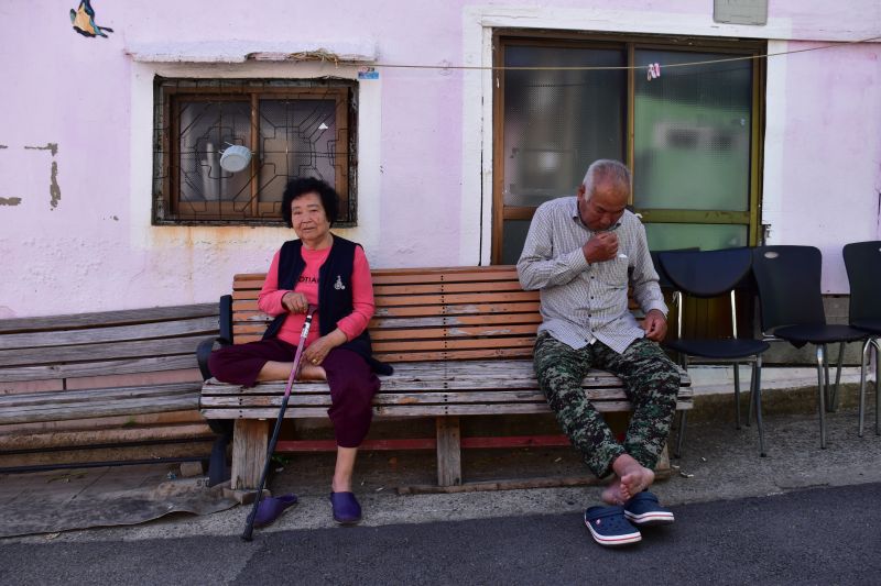 사진을 찍고 있으니 물어본다. 어디서 왔냐고. 부산에 산다고 이야기하고 앞에 앉았다. 여기서도 거의 30분 이상을 이야기했다. 아들은 해운대 살고, 또 공무원 하고 자식들 자랑이다. 나이 들면 그것 말고 또 있을까? 그대로 고생하며 살았으니 복을 받는 것이 당연하다. 왜 이곳에 사느냐고 물으니 편하단다. 그냥 이곳이 좋다고 한다. 예전에 이곳이 참 좋았다고 한다. 하지만 이제 재개발하면서 사람들이 보상받고 다 떠났다고 한다. 아랫마을은 재개발을 안 했으면 좋겠단다. 보상받아도 그 돈으로 갈 데도 없는 사람들이 많단다.
