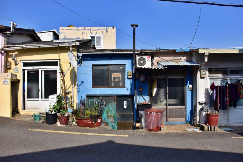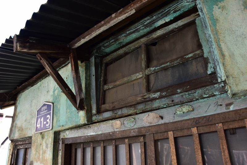 엷은 시멘트가 벗겨지면 여지없이 흙으로 된 속살이 드러난다. 이곳의 상당수의 집들이 이런 형태이다. 이런 형태의 집들은 대부분 피난 와서 이곳에 땅을 받고 스스로 집을 지어 올린 사람들의 집이다.