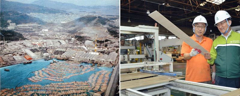 성창기업은 1916년 경북 영주에서 영창상점으로 지작해, 1948년 대구로 이전한다. 그곳에서 성창기업으로 바꾸고 합당사업으로 확장한다. 그러다 전쟁이 일어나 1955년 부산 남구의 우암동 앞으로 이전하게 된다. 위의 사진이 우암동 시절의 성창기업이다. 우암동의 수많은 사람들이 성창기업의 노동자로 살아갔다. [ 사진과 글의 출처는 부산시보 "목재산업 외길 - 부산 첫 100년 기업 우뚝'에서 가져옴]