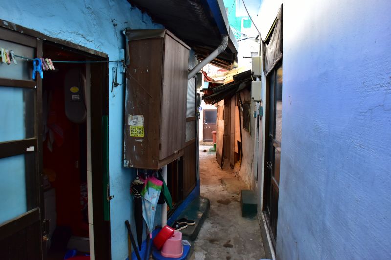 이렇게 좋은 골목 위에 집들이 2층 3층까지 올라가 있다. 보기만 해도 아찔하다. 이러한 집들은 일제강점기 시절이나 6.25 피난민들의 집이 아니라고 한다. 대부분 시골에서 돈을 벌기 위해 올라온 이들에게 세를 주기 위해 집을 개조하고 자르고 올려 만든 집들이라고 한다. 본주민과 피난민들은 이렇게 하여 월세를 놓아 돈을 벌었다. 공간이 너무 좁아 발을 뻗으면 어떤 공간도 남아 있지 않는 방들이 수도 없이 많았다. 이런 곳에 화장실이 있을 턱이 없으니 공동화장실이 많았던 것이다.