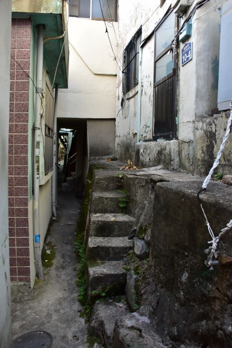 현주소로 우암로 200번 길 마을이다. 아무 생각 없이 이곳에 들렀다 너무 놀랬다. 지금까지 보았던 그 어떤 산복도로 집이나 피난민촌보다 열악하고 좁았다. 한 사람이 겨우 다닐 골목들 안에 수많은 집들이 2층 3층까지 연결되어 있었다. 그냥 할 말을 잃었다. 후에 마을 주민을 만나 이곳의 이야기를 한 참을 들었다.