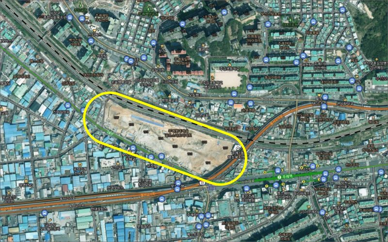 사진은 철길 위 육교에서 내려오면서 찍은 사진들로 아래로 갈수록 주례사거리 방향으로 내려간다.