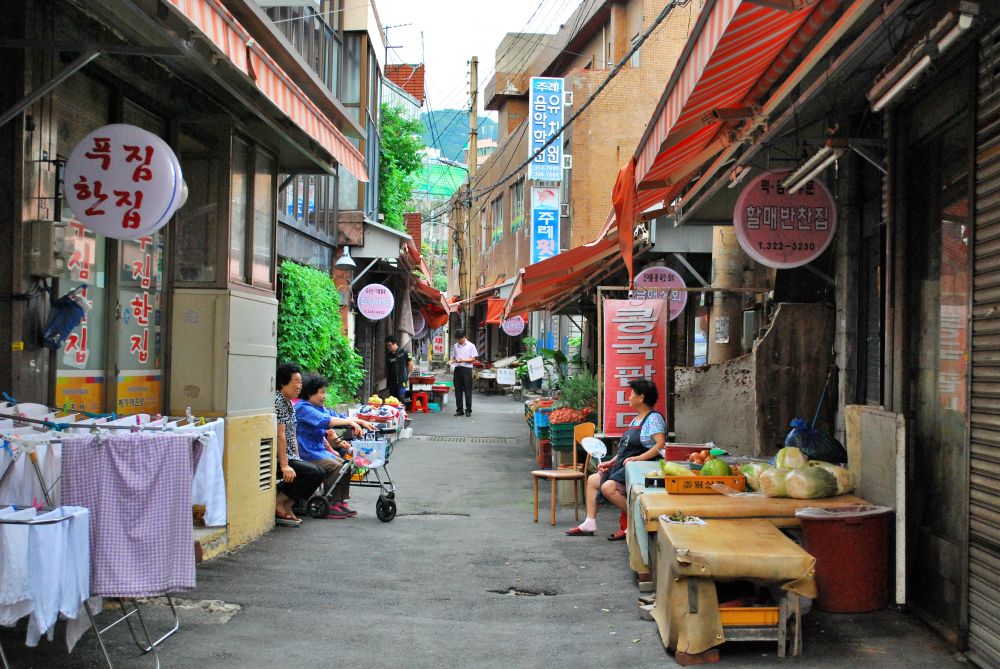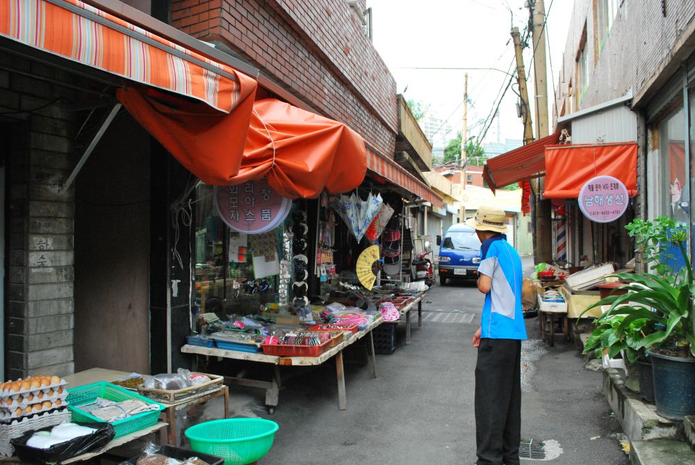 뒤돌아 주례시장 쪽을 보니 시간은 흘러도 모양은 그대로다. 이젠 다시 볼 수 없는 골목이 되었다.