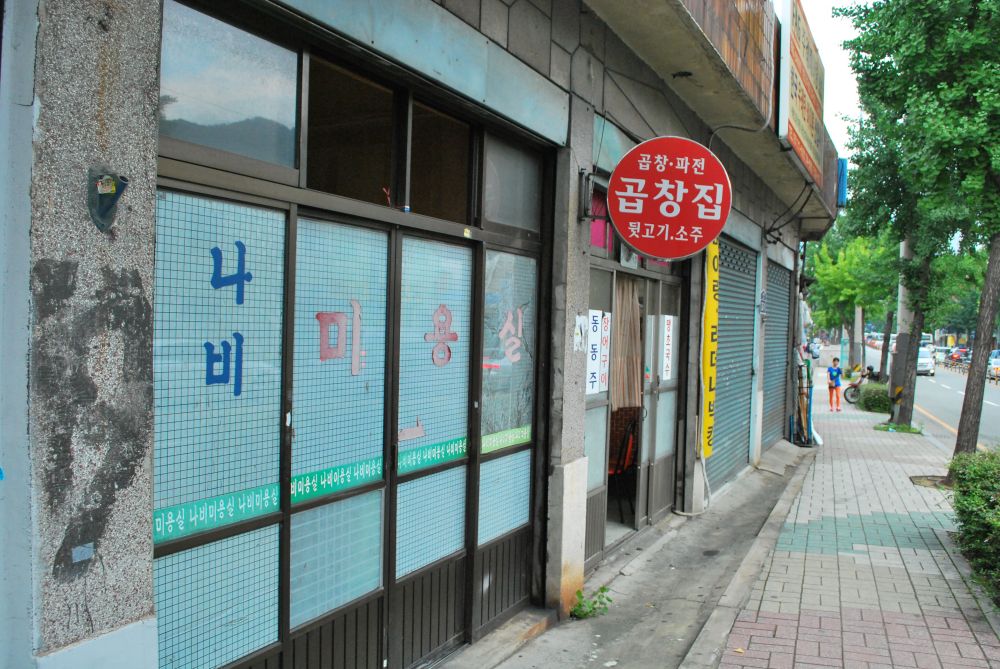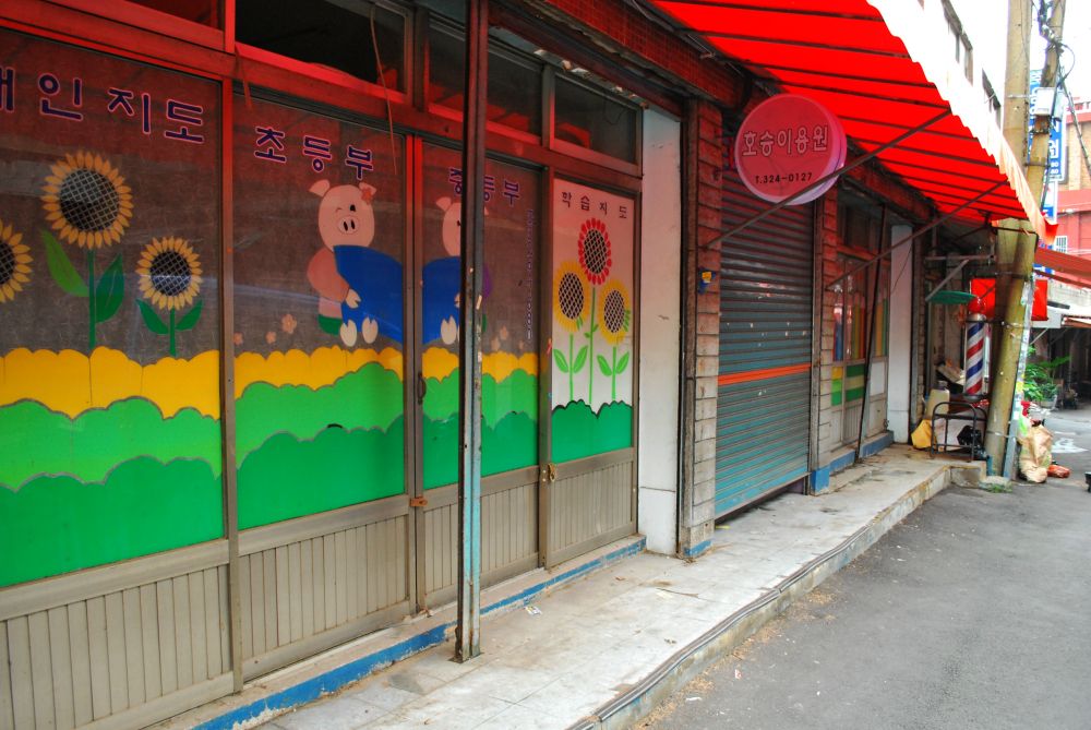 대로변에 가까워지면 골목길도 점점 넓어지고, 학원도 보인다. 이곳에 학원이 있었다니... 호승이용원 이발집도 보인다. 하지만 그때는 이미 영업을 하지 않고 문을 닫은 상태였다.