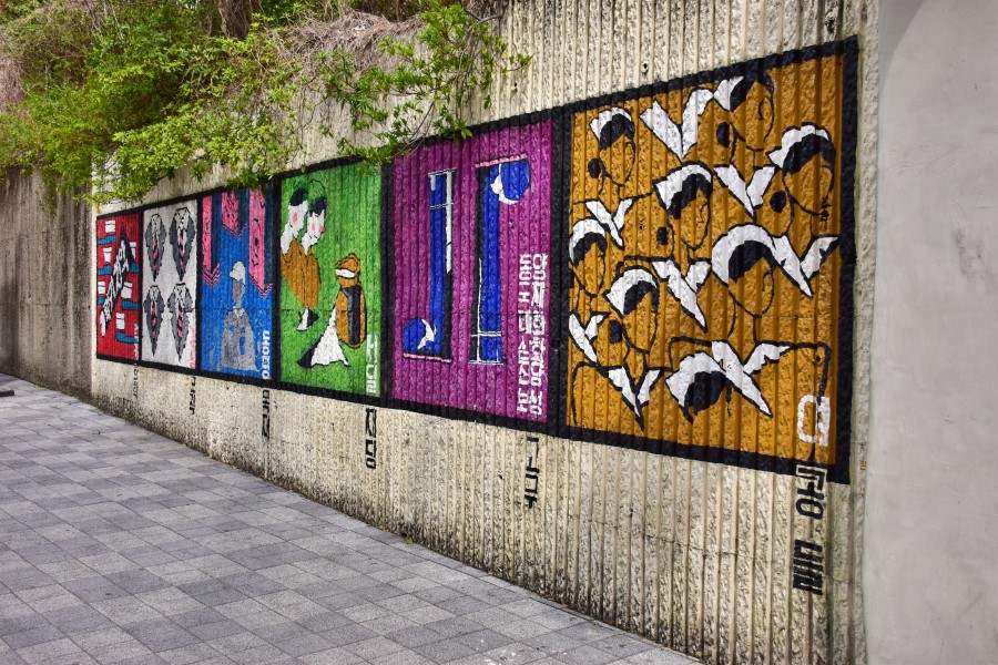 테마거리에 가기 전부터 벽에 부산의 역사를 담은 벽화가 그려져 있다.