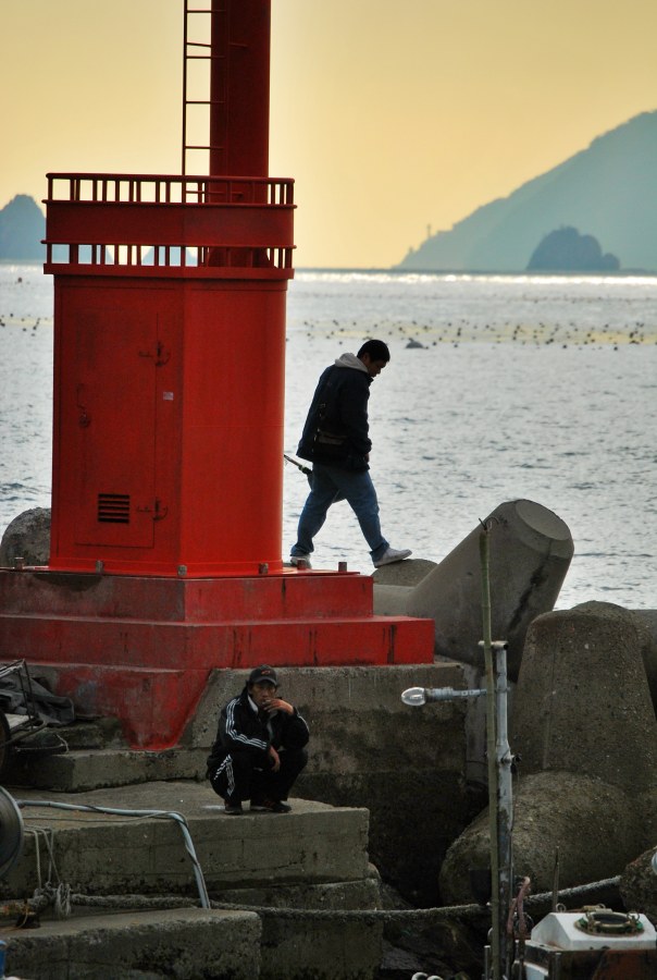 해운대 미포항 등대와 낚시꾼