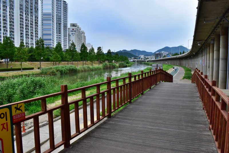 터널을 지나면 공원처럼 꾸며진 수영강이 펼쳐진다. 지금은 보기도 좋고 냄새고 거의 나지 않지만 10년 전만 해도 악취가 심해서 지나는 것이 곤욕이었다. 수영강 복원 프로젝트를 통해 수질이나 환경이 정말 좋아졌다. 하지만 아직도 물은 더럽고 냄새는 난다. 겨울에는 잘 모르지만 여름이 되면 강가를 걷다 보면 은근히 심하다. 수질 개선이 속히 되었으면 좋겠다.